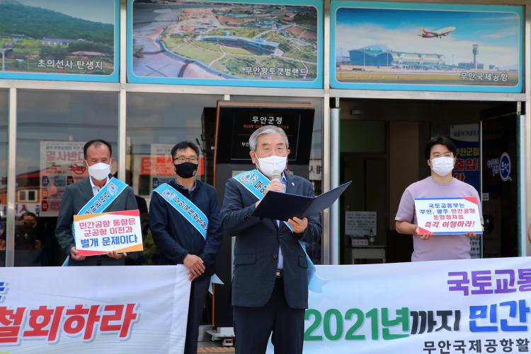 ÃßÁøÀ§´Â ¡°±¤ÁÖÁö¿ªÀÇ ÀÌÀ͸¸À» À§ÇØ ¹Î°£°øÇ×ÀÇ ÅëÇսñ⸦ È®Á¤ÇÏÁö ¾Ê°í ±º °øÇ× ÀÌÀü »çÇ×±îÁö ¹Ý¿µÇϰڴٴ °ÍÀº ´©°¡ º¸´õ¶óµµ ±¤ÁÖÀüÅõºñÇàÀåÀ» ¹Î°£°øÇ×°ú ÇÔ²² ¹«¾È±º¿¡ ÀÌÀüÇÏ·Á´Â ±â¸¸ ¼úÃ¥ÀÌ ¾Æ´Ò ¼ö ¾ø´Ù¡±¸ç Áö¿ª °¥µîÀÇ ºÒ¾¾°¡ µÇ´Â ±º °øÇ× ÀÌÀü ¹®Á¦¿Í º°°³·Î 2021³â±îÁö ¹«¾È±¹Á¦°øÇ×°ú ±¤Áֹΰ£°øÇ× ÅëÇÕÀ» ÃßÁøÇÑ´Ù´Â ±¹Åä±³ÅëºÎÀÇ Á¤Ã¥Àû °á´ÜÀ» °·ÂÈ÷ Ã˱¸Çß´Ù.