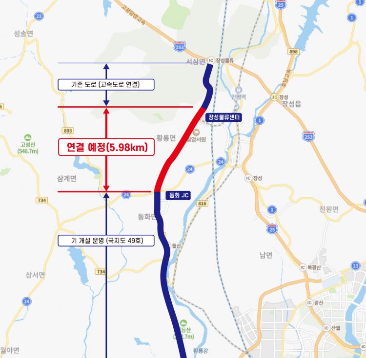 ±¹Áöµµ 49È£¸¦ ¿¬ÀåÇØ µ¿ÈJC~À强¹°·ù¼¾Å͸¦ Á÷¼±À¸·Î ¿¬°áÇϸé À̵¿ °Å¸®¸¦ 9.1km °¡·® ´ÜÃà½Ãų ¼ö ÀÖÀ¸¸ç, ¿îÇà ½Ã°£µµ 20ºÐ ÀÌ»ó ÁÙÀÏ ¼ö ÀÖ´Ù.