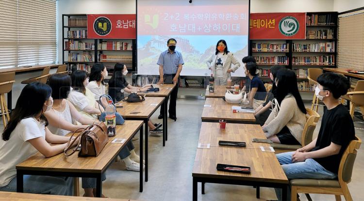 [ÅåÅå´º½º]È£³²´ëÇб³ Áß±¹¾îÇаú(ÇаúÀå À̱¤Çõ)´Â 9¿ù 1ÀÏ °øÀÚ¾ÆÄ«µ¥¹Ì 2Ãþ µµ¼½Ç¿¡¼ 13¸íÀÇ À¯ÇÐ ´ë»ó Çлý°ú Çаú±³¼ö µîÀÌ Âü¼®ÇÑ °¡¿îµ¥ È£³²´ë-Áß±¹ »óÇÏÀÌ´ë ¡®2+2 º¹¼öÇÐÀ§ ȯ¼Û½Ä¡¯À» °¡Á³´Ù.