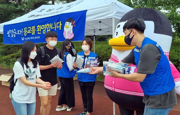 ÃÑÇлýȸ´Â 9¿ù 2ÀÏ ¿ÀÀü ±³³» Á¤¹® »ç°Å¸®¿¡¼ °³ÀÎÀ§»ý ¹× ¹æ¿ª¼öÄ¢À» ÁؼöÇÑ °¡¿îµ¥ µî±³ÇÏ´Â ÀçÇлýµéÀ» ´ë»óÀ¸·Î °³°Àλç¿Í ÇÔ²² Äڷγª ÀÚ°¡Áø´Ü ŰƮ¸¦ ³ª´²ÁÖ¸ç °Ç°ÇÑ 2Çб⸦ º¸³»ÀÚ´Â ÀÀ¿ø ¸Þ½ÃÁö¸¦ Àü´ÞÇß´Ù.