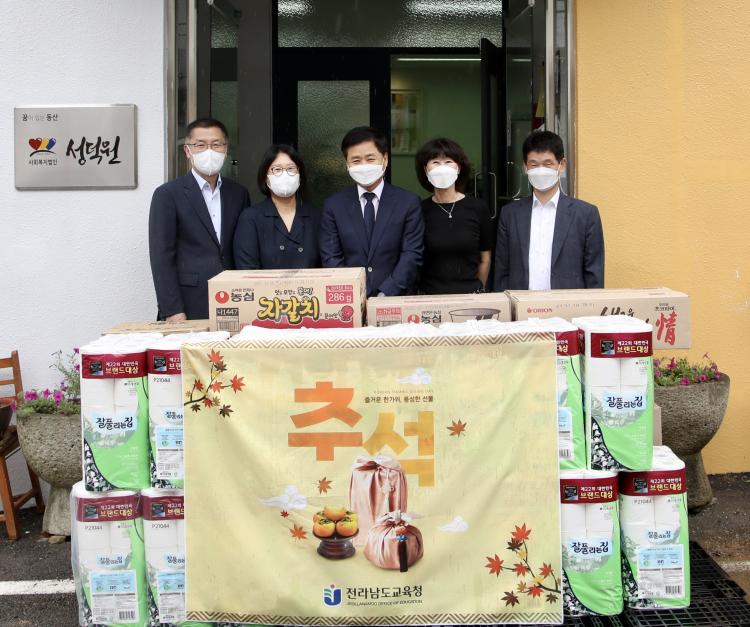 Àü¶ó³²µµ±³À°Ã»Àº Äڷγª19 »óȲÀ» °¨¾ÈÇØ ½Ã¼³ Á¾»çÀÚ ¹× ÀÌ¿ëÀÚ¿ÍÀÇ Á¢ÃËÀ» ÃÖ¼ÒÈÇϱâ À§ÇØ ÃÖ¼ÒÀοøÀ¸·Î ¹æ¹®, »ýȰ¿ëǰ µîÀ» Àü´ÞÇϰí À§·ÎÇß´Ù.
