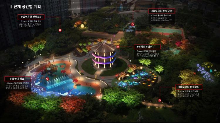 ¶ÇÇÑ ±ºÀº °èÀý°¨À» ´À³¥ ¼ö ÀÖ´Â ³«¿± °ü¸ñ 1000ÁÖ µîÀ» Ãß°¡·Î ½ÄÀçÇÏ°í ÆÈ°¢Á¤ Á¶¸í °ø»ç¿Í Á¶Çü¹° ¼³Ä¡¸¦ ÅëÇØ ¾ß°£ °æ°üÀ» °³¼±ÇÏ¿© ¿À·¡µÇ°í ³°Àº ºÒ¹«°ø¿øÀ» ¾Æ¸§´Ù¿î °ø°£À¸·Î Àçź»ý½Ãų °èȹÀÌ´Ù.