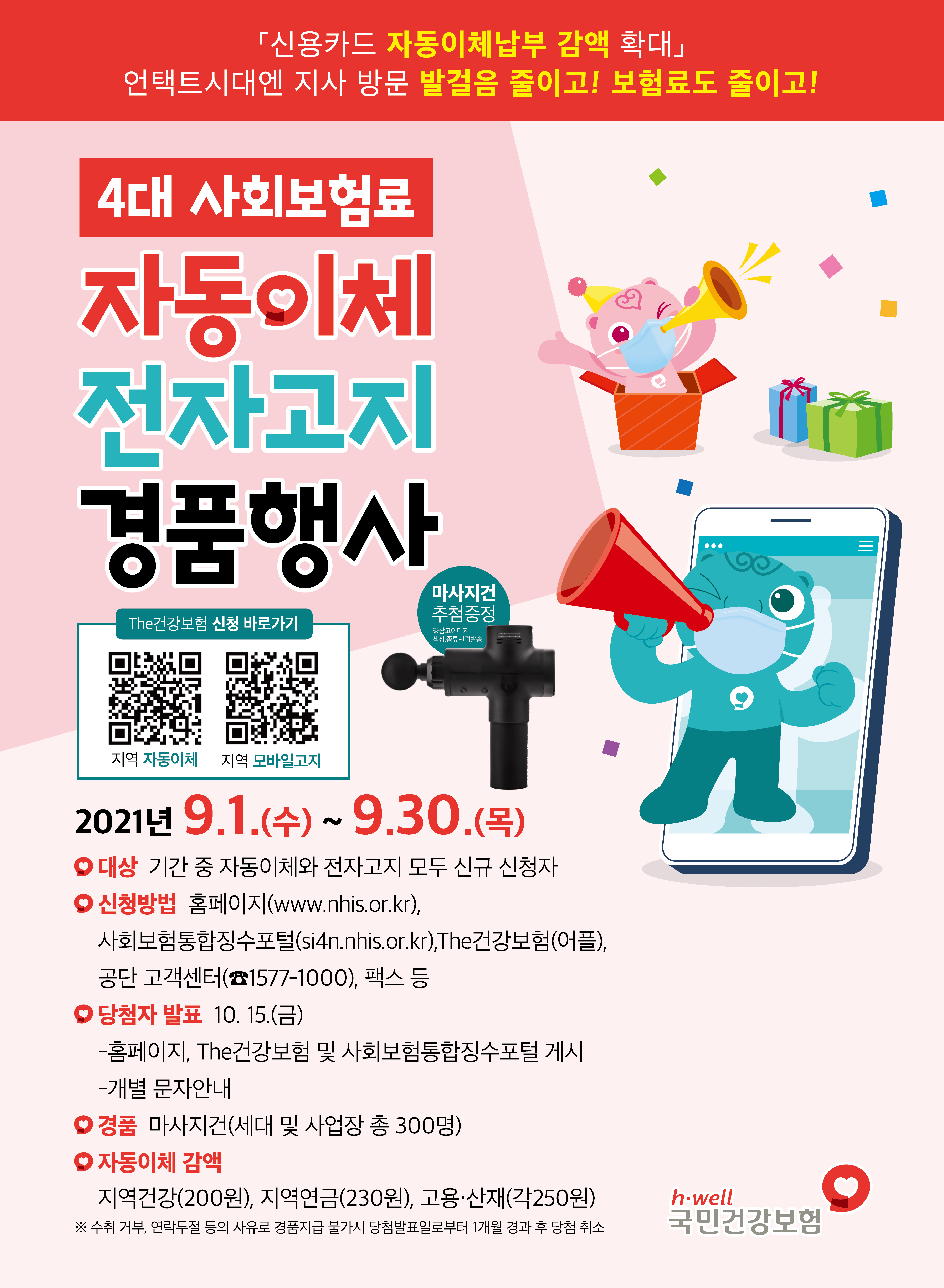 À̹ø °æÇ°Çà»ç´Â 9¿ù 1ÀϺÎÅÍ 9¿ù 30ÀϱîÁö ÁøÇàµÇ¸ç 4´ë »çȸº¸Çè·á ÀÚµ¿ÀÌü¿Í ÀüÀÚ°íÁö¸¦ ¸ðµÎ ½Å±Ô ½ÅûÇÑ »ç¾÷Àå°ú Áö¿ª°¡ÀÔÀÚ¸¦ ´ë»óÀ¸·Î ÃÑ 300¸íÀ» Ãß÷ÇÏ¿© ¸¶»çÁö°ÇÀ» Áö±ÞÇÑ´Ù.