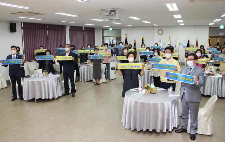 ³ªÁֽà ¿©¼º´ÜüÇùÀÇȸ(ȸÀå °¿¬¼÷)¿¡¼ ÁÖ°üÇÑ ¾ç¼ºÆòµîÁÖ°£ ±â³äÇà»ç´Â ¾ç¼ºÆòµî ¹®È È®»ê¿¡ Èû¾´ °ø·ÎÀÚ¿¡°Ô À¯°øÇ¥Ã¢ ½Ã»ó°ú ´õºÒ¾î ÃàÇÏ ¸Þ½ÃÁö¸¦ Àü´ÞÇϸç ÁøÇàµÇ¾ú°í, Äڷγª19 È®»ê ¹æÁö¸¦ À§ÇØ Âü¿©ÀοøÀ» ÃÖ¼ÒÈ ÇÏ¿© °ü³» 21°³ ¿©¼º´Üü ´ëÇ¥ µî 30¿©¸íÀÌ Âü¼®Çß´Ù.