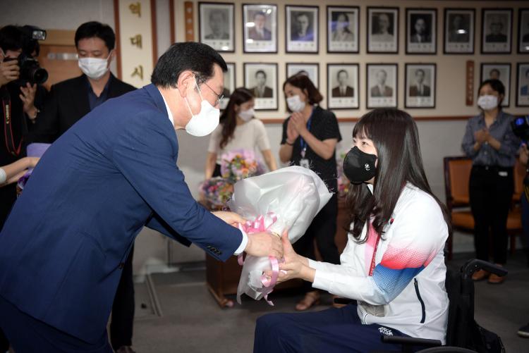 À̿뼷 ½ÃÀåÀº ¡°Äڷγª19¿Í ¾î·Á¿î ¿©°Ç ¼Ó¿¡¼µµ µµÄìÆÐ·²¸²ÇÈ¿¡¼ ºÒ±¼ÀÇ µµÀüÁ¤½ÅÀ» º¸¿©Áֽб¤ÁÖ ¼±¼ö´Ü ¸ðµÎ±â ½ÂÀÚ´Ù¡±¸ç ¡°¾ÕÀ¸·Î 2025 ¼¼°è¾ç±Ã¼±¼ö±Ç´ëȸ¿Í 2038 ±¤Áִ뱸ÇÏ°è¾Æ½Ã¾È°ÔÀÓÀ» À¯Ä¡ÇØ ±¹Á¦½ºÆ÷Ã÷µµ½Ã·Î¼ µµ½Ã ºê·£µå¸¦ Á¦°íÇϰí, Áö¿ª Àå¾ÖÀÎ ¼±¼öµéÀÌ º¸´Ù ÁÁÀº ½Ã¼³°ú ȯ°æ¿¡¼ ¸¶À½²¯ °æ±â±â·®À» ÆîÄ¥ ¼ö ÀÖµµ·Ï ÃÖ¼±À» ´ÙÇϰڴ١±°í ¸»Çß´Ù.