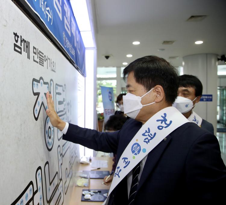 ¿ÀÀü¿¡ ÁøÇàµÈ 1ºÎ¿¡¼´Â Àå¼®¿õ ±³À°°¨À» ºñ·ÔÇÑ °£ºÎµéÀÌ Ãâ±ÙÇÏ´Â Á÷¿øµé¿¡°Ô ¡®Ã»·ÅÇÑ Àü³²±³À°¡¯À̶ó´Â ±ÛÀÚ¿¡ º»ÀÎ ¼¸íÀ» ÇÑ ½ºÆ¼Ä¿¸¦ ´Þ¾ÆÁÖ´Â Çà»ç¸¦ °¡Á³´Ù. ¶Ç, û·ÅÀǽÄÀ» °íÃë½ÃÅ´Àº ¹°·Ð Ȱ±âÂ÷°í °Ç°ÇÑ Á¶Á÷¹®È¸¦ ±â¿øÇÏ¸ç ¡®Ã»·ÅÇÑ Àü³²±³À°¡¯À̶ó´Â ¹®±¸°¡ ÀûÈù û·Å ¸¶½ºÅ©¿Í ¡®Ã»·Å ·Î°í¡¯°¡ Àִ û·Å °áÀçÆÇÀ» ³ª´²Áá´Ù.