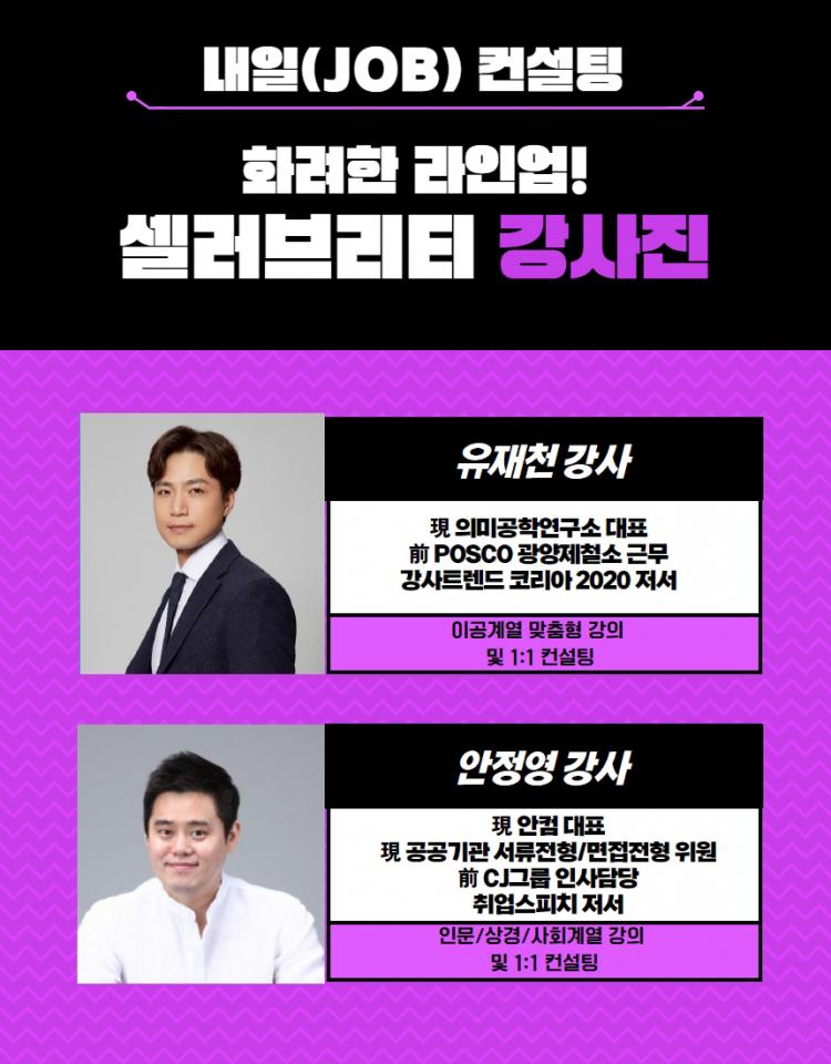 ¿À´Â 23ÀϺÎÅÍ ¿î¿µµÇ´Â ³»ÀÏ(JOB)ÄÁ¼³ÆÃÀº ÇлýµéÀÇ Ãë¾÷ ½ÇÀü ¿ª·® °È¸¦ À§ÇØ ¸¶·ÃµÆ´Ù. ÄÁ¼³ÆÃÀº °ÀǸ¦ ÅëÇØ ½ÇÁ¦·Î Ãë¾÷¿¡ ÇÊ¿äÇÑ Áö¿ø¼¿Í ¸éÁ¢À» ÇÑ ¹ø¿¡ ÁغñÇÒ ¼ö ÀÖµµ·Ï ±¸¼ºµÆ´Ù.