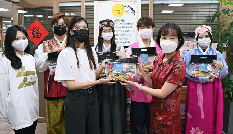 [ÅåÅå´º½º]È£³²´ëÇб³(ÃÑÀå ¹Ú»óö)´Â 9¿ù 17ÀÏ ¿ÀÀü 11½Ã 30ºÐ ±¹Á¦±³·ùó(óÀå ¼Õ¿ÏÀÌ)¿¡¼ ¿Ü±¹ÀÎ À¯Çлýµé¿¡°Ô Çѱ¹ÀüÅëÀÇ Ãß¼® À½½ÄÀÎ ¼ÛÆí°ú °úÀÏÀ» Àü´ÞÇÏ´Â ¡®¸íÀý À½½Ä ³ª´®¡¯ Çà»ç¸¦ °¡Á³´Ù.
