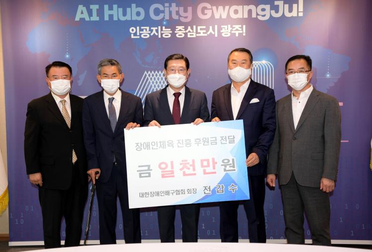 Àü°©¼ö ȸÀåÀº ¡°Æò¼Ò Àå¾ÖÀΠüÀ°È°µ¿¿¡ °ü½ÉÀ» °¡Á®ÁØ ±¤ÁÖ½ÃÀå¾ÖÀÎüÀ°È¸¿¡ °¨»çÇÑ ¸¶À½À» ´ã¾Æ ÈÄ¿ø±ÝÀ» Áö¿øÇÏ°Ô µÆ´Ù¡±¸ç ¡°¾ÕÀ¸·Îµµ Áö¿ª Àå¾ÖÀÎüÀ° ¹ßÀüÀ» À§ÇØ Èû¾²°Ú´Ù¡±°í ¸»Çß´Ù.