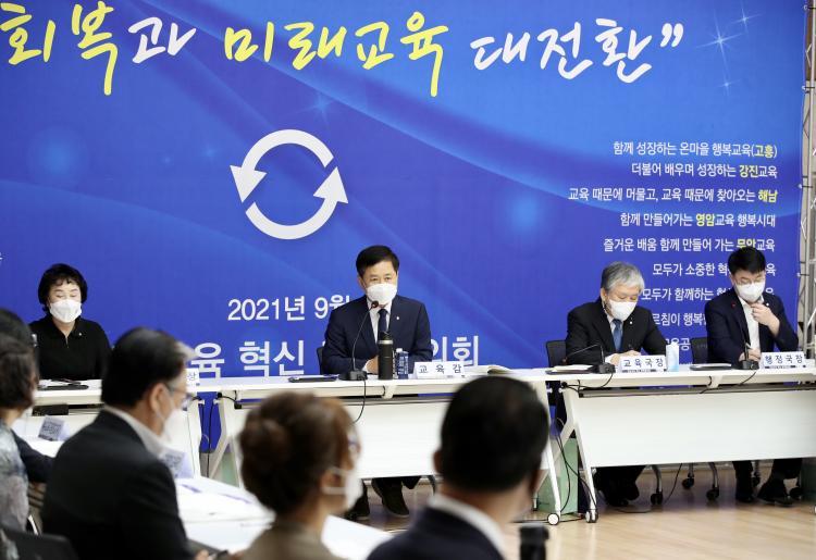 Àå¼®¿õ ±³À°°¨Àº ¡°Äڷγª19·Î ÀÎÇÑ ÇнÀ°á¼Õ ¹× ½É¸®¡¤Á¤¼ ¹®Á¦¸¦ ÁßÁ¡ Áö¿øÇϱâ À§ÇÑ ±³À°È¸º¹¹æ¾È, µðÁöÅÐ ´ëÀüȯ½Ã´ë¿¡ ´ëÀÀ ¿ª·® °È¹æ¾ÈÀÌ ±¸Ã¼È µÇ¾î ÇöÀå¿¡ ½º¸çµé°í ÀÖ´Ù.¡±¸ç ¡°Àü³²±³À° Á¤Ã¥ÀÇ Àü¸éÀû ÆÐ·¯´ÙÀÓ ÀüȯÀ¸·Î ³ª¾Æ°¥ ¼ö ÀÖµµ·Ï Á¶Á÷ÀÇ ¸ðµç ±¸¼º¿øµéÀÌ Çù¾÷À» ³Ñ¾î ¿ø ÆÀÀ¸·Î Çб³ ÇöÀåÀ» Áö¿øÇØ ÁÖ±æ ¹Ù¶õ´Ù.¡±°í ¸»Çß´Ù.