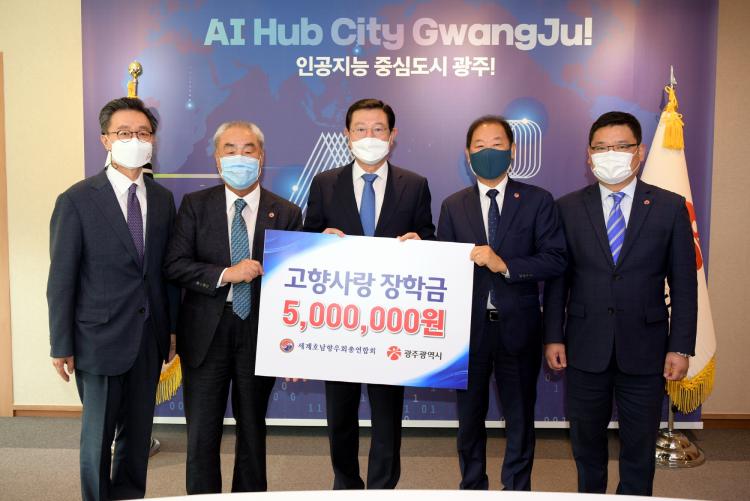 À̿뼷 ½ÃÀåÀº ¡°Äڷγª19·Î ¸¹Àº È£³² Çâ¿ìµéÀÌ °íÇâ ¶¥À» ¹âÁö ¸øÇÏ´Â ¾î·Á¿î »óȲ¿¡¼µµ »ç¶ûÇÏ´Â °íÇâ ÈĹèµéÀ» À§ÇØ ¸¶À½À» ¸ð¾Æ ÀåÇбÝÀ» º¸³»Áà °¨»çµå¸°´Ù¡±¸ç ¡°¿ì¸® Çâ¿ìµéÀÌ °íÇâ¿¡ ´ëÇÑ ÀںνÉÀ» ¾È°í »ì¾Æ°¡½Ç ¼ö ÀÖµµ·Ï ¼¼°è ¼Ó¿¡ ¿ì¶Ò ¼± ±¤ÁÖ¸¦ ¸¸µå´Â µ¥ ÃÖ¼±À» ´ÙÇϰڴ١±°í ¸»Çß´Ù.
