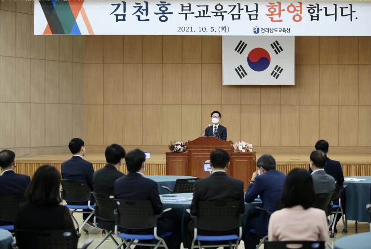 Àå¼®¿õ ±³À°°¨Àº ȯ¿µ»ç¸¦ ÅëÇØ ¡°Àü³²±³À°Àº µðÁöÅÐ ´ëÀüȯ ½Ã´ë¸¦ ¸Â¾Æ Çõ½ÅÀ» ³Ñ¾î Áö¼Ó°¡´É ¹Ì·¡±³À°À» ¿¾î°¡¾ß ÇÏ´Â °úÁ¦¿¡ Á÷¸éÇØ ÀÖ´Ù.¡±¸é¼ ¡°±è ºÎ±³À°°¨´ÔÀÌ Áß¾Ó¹«´ë¿¡¼ ½×Àº °æ·û°ú ÁöÇý´Â Àü³²±³À°ÀÌ Çõ½ÅÀ» ³Ñ¾Æ ¹Ì·¡·Î ³ª¾Æ°¡´Â µ¥ Å« ÈûÀÌ µÉ °ÍÀ̶ó ¹Ï´Â´Ù.¡±°í ¸»Çß´Ù.