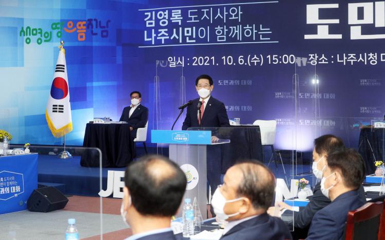 À̳¯ µµ¹Î°úÀÇ ´ëÈ´Â ±è¿µ·Ï Áö»ç, °ÀÎ±Ô ³ªÁÖ½ÃÀå, ÃÖ¸í¼ö µµÀÇ¿ø, ±è¿µ´ö ³ªÁÖ½ÃÀÇȸ ÀÇÀåÀ» ºñ·ÔÇÑ ½ÃÀÇ¿ø, Àü³²µµ¡¤³ªÁֽà °£ºÎ °ø¹«¿øÀÌ Âü¿©ÇÑ °¡¿îµ¥ Äڷγª19 ¹æ¿ª¼öÄ¢À» ÁؼöÇϸç ÁøÇàÇß´Ù. 伺±Ù ³ªÁֽà ½Ã¹Î¼ÒÅëÀ§¿øÀå, ¿À¼±Á¾ °ø»ê¸é ÀÌÀåÇùÀÇȸÀå µî ½Ã¹Î 150¿© ¸íÀº ¿Â¶óÀÎÀ¸·Î Áß°èÇÑ µµ¹Î°úÀÇ ´ëÈ¿¡ Âü¿©Çß´Ù.