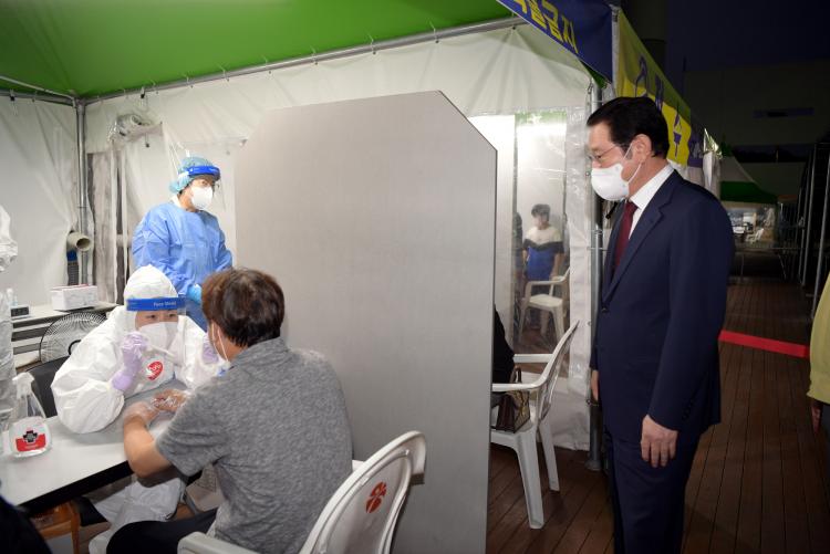 À̿뼷 ±¤ÁÖ½ÃÀå, ½Ãû Äڷγª19 ¼±º°Áø·á¼Ò °Ý·Á¹æ¹®