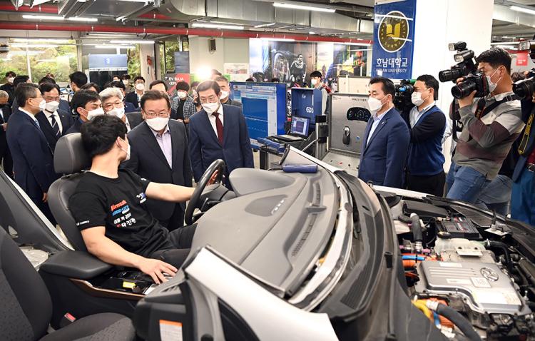 [ÅåÅå´º½º]±èºÎ°â ±¹¹«ÃѸ®°¡ 10¿ù 13ÀÏ 4Â÷»ê¾÷Çõ¸í½Ã´ë ´ëÇб³À°ÀÇ ¿ì¼ö»ç·Ê·Î ¼Õ²ÅÈ÷´Â È£³²´ëÇб³(ÃÑÀå ¹Ú»óö) ¹Ì·¡ÀÚµ¿Â÷ »ó»ó°øÀÛ¼Ò¸¦ ¹æ¹®, ģȯ°æ ¹Ì·¡ÀÚµ¿Â÷ ºÐ¾ß¸¦ À̲ø¾î³ª°¥ û³âµéÀÇ Àü±âÀÚµ¿Â÷ ¹× ÀÚÀ²ÁÖÇàÀÚµ¿Â÷ ±³À° ÇöÀåÀ» µÑ·¯ºÃ´Ù.