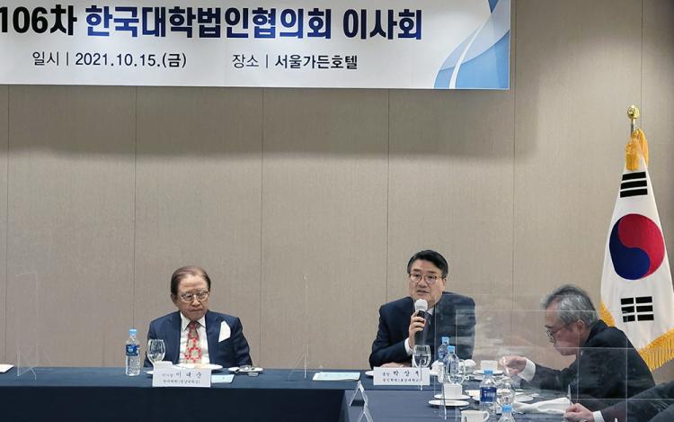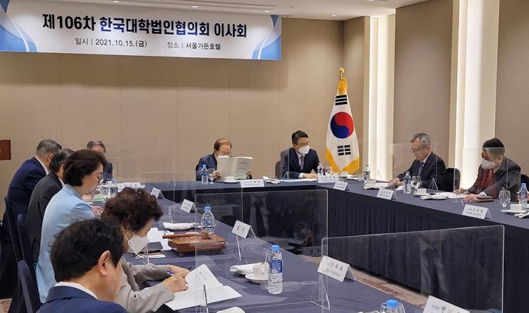 »ç´Ü¹ýÀÎ Çѱ¹´ëÇйýÀÎÇùÀÇȸ(ȸÀå ³ëÂù¿ë ¼º½ÉÇпø ÀÌ»çÀå)´Â »ç¸³´ëÇÐÀÇ °æ¿µ°ú ±³À°Á¤º¸¸¦ ±³·ùÇϰí Á¤Ã¥À» ¿¬±¸¡¤°³¹ßÇØ ´ëÇÐÀÇ ÀÚÁÖ ¹ßÀü°ú °ø°ø¼ºÀ» Á¦°íÇϴµ¥ ÁßÃß ¿ªÇÒÀ» ÇÏ´Â »ç´Ü¹ýÀÎÀÌ´Ù. ÇöÀç 4³âÁ¦ »ç¸³´ëÇÐÀ» ¿î¿µÇÏ´Â Àü±¹ 176°³ Çб³¹ýÀÎ ÀÌ»çÀåµéÀÌ È¸¿øÀÌ´Ù.