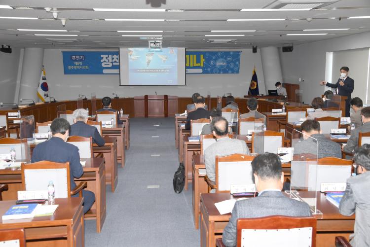 ÇÑÆí, ±¤ÁÖ±¤¿ª½ÃÀÇȸ´Â ÁÖ¿äÁ¤Ã¥¿¡ ´ëÇÑ ¿¬±¸¿Í ÀÚ¹®À» ÅëÇÏ¿© ½Ã¹ÎÀº ¹°·Ð »çȸ´Üü¿ÍÀÇ ¼ÒÅëÀ» °ÈÇϱâ À§ÇÑ ½Ã¹Î´Üü ¹× Àü¹®°¡·Î ±¸¼ºµÈ Á¤Ã¥³×Æ®¿öÅ©¸¦ ±¸¼º¡¤¿î¿µÇϰí ÀÖÀ¸¸ç, À̳¯ ¼¼¹Ì³ª´Â Áö¿ª ³» ¸ðµç ºÐ¾ßÀÇ Àü¹®°¡¿Í ÁöÇý¸¦ ³ª´©¸ç Ä¡¿ÇÏ°Ô °í¹ÎÇÏ°í ¿¬±¸ÇÏ´Â Á¤Ã¥¡¤ÀÔ¹ý Á᫐ ÀÇȸ¸¦ ±¸ÇöÇϱâ À§ÇØ °¢ ºÐ°úº° Áֿ伺°ú¸¦ °øÀ¯ÇÏ´Â ÀǹÌÀÖ´Â ½Ã°£ÀÌ µÇ¾ú´Ù.
