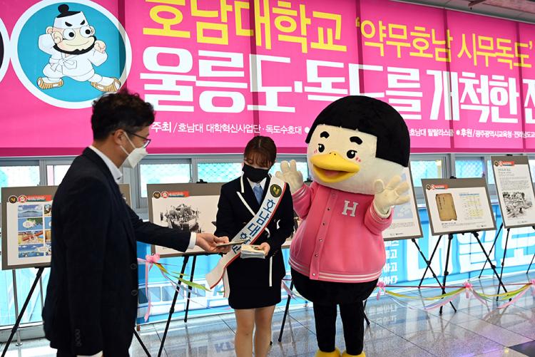 ÀÌ¿Í ÇÔ²² ÀϹÝÀεéÀÇ ÀÌÇØ¸¦ µ½±â À§ÇØ È£³²´ëÇб³ ¸¸È¾Ö´Ï¸ÞÀ̼ÇÇаú ¹éÁ¾¼º ±³¼ö¿Í ÀçÇлýµéÀÌ Á¦ÀÛÇÑ ±¸ÇѸ» Àü¶óµµ °íÈï, ¿©¼ö, ¼øÃµÁö¿ª ¾î¹ÎµéÀÇ ¿ï¸ªµµ¡¤µ¶µµ °³Ã´ °úÁ¤ ½ºÅ丮 ¡®¹«ºùÅ÷¡¯°ú ¿Â¶óÀÎ Àü½Ã »çÀÌÆ®(https://www.honam.ac.kr/Dokdo)¸¦ ÅëÇØ VR·Îµµ Àü½ÃÀÛǰÀ» ¸¸³ª º¼ ¼ö ÀÖ´Ù.