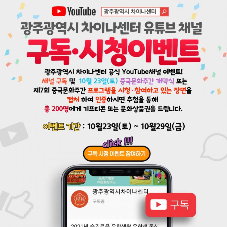 ±¸µ¶ ½Åû À̺¥Æ®´Â Â÷À̳ª¼¾ÅÍ °ø½Ä À¯Æ©ºê ä³Î ±¸µ¶°ú ÇÔ²² 23ÀÏ¿¡ °³¸·ÇÏ´Â ¡®Á¦7ȸ ±¤ÁÖ±¤¿ª½Ã Áß±¹¹®ÈÁÖ°£ °³¸·½Ä¡¯À» Æ÷ÇÔÇÑ Áß±¹¹®ÈÁÖ°£ ÇÁ·Î±×·¥À» ½ÃûÇÏ´Â Àå¸éÀ» ĸÃÄÇϰųª ´ñ±ÛÀ» ³²°Ü Â÷À̳ª¼¾ÅÍ È¨ÆäÀÌÁö °øÁö »çÇ×À» ÅëÇØ ÀÀ¸ðÇÏ¸é µÈ´Ù.