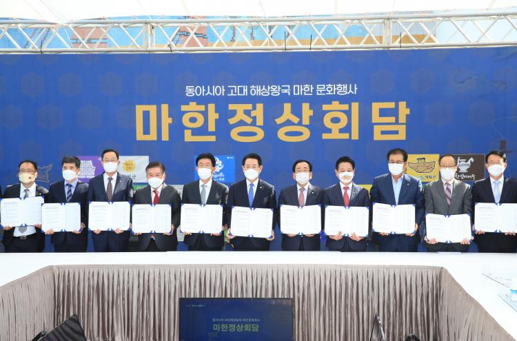 ¸¶ÇÑÁ¤»óȸ´ã¿¡ Âü¼®ÇÑ ½ÃÀ塤±º¼öµéÀº ¸¶ÇÑ ¿ª»ç¹®ÈÀÚ¿øÀÇ ¼¼°èÈ, ¸¶ÇÑ ¿ª»ç¹®ÈÀÚ¿øÀÇ ´ë±¹¹Î ÇâÀ¯ Ȱ¿ë ¿©°Ç Á¶¼º, ¸¶ÇÑ ¿ª»ç¹®È±ÇÀÇ ¿ª»çÀû °¡Ä¡ È®¸³À» À§ÇÑ ¸¶ÇÑ ¿ª»ç¹®È±Ç º¹¿ø°ú ¼¼°èÈÀÇ ´ë¼± °úÁ¦ °øµ¿°ÇÀǼ¿¡ ¼¸íÇß´Ù.