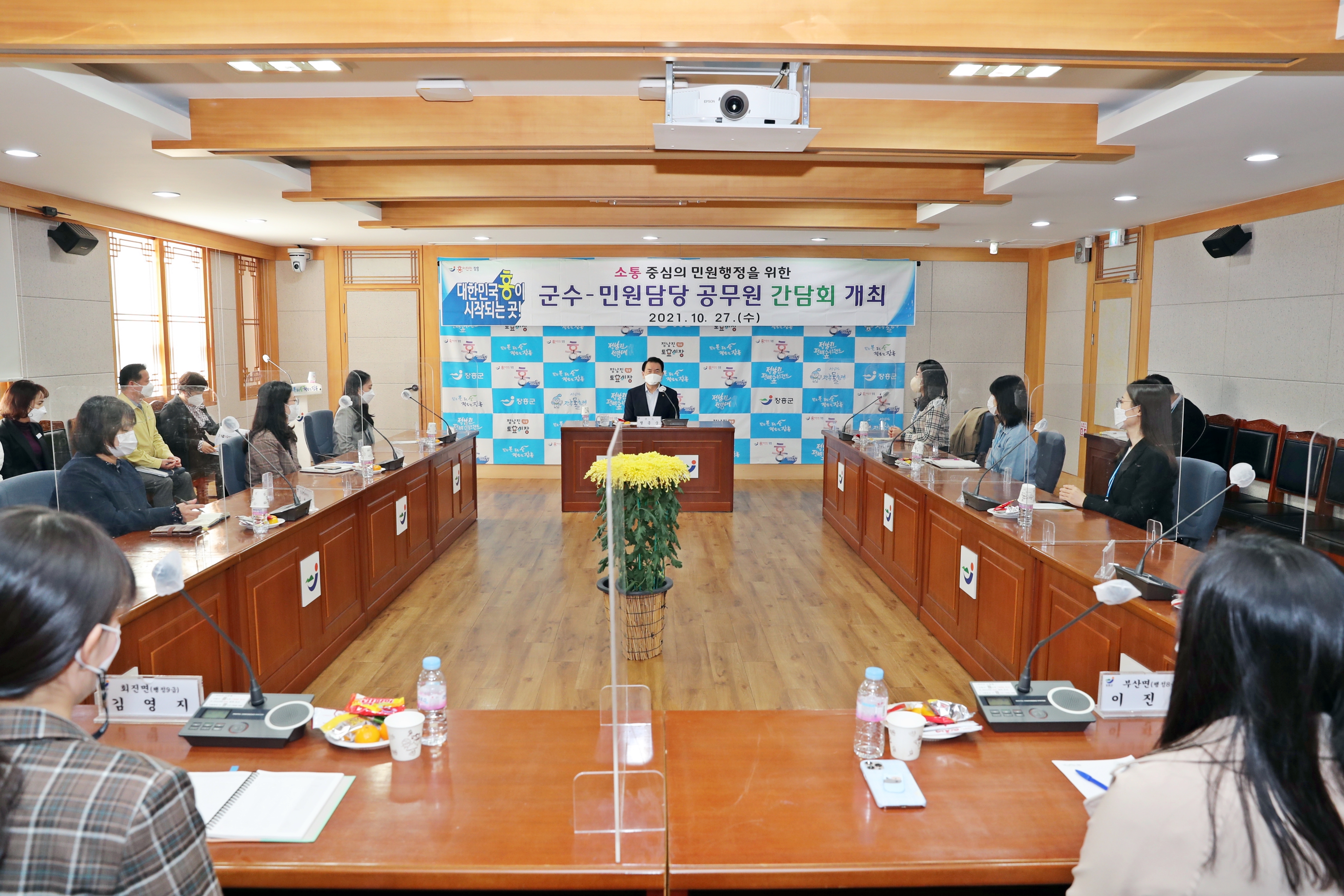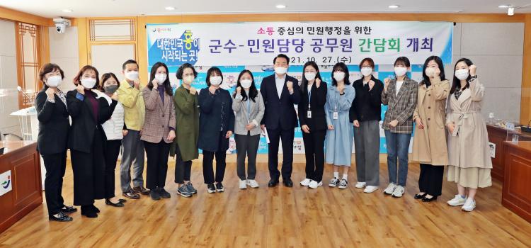 À̹ø °£´ãȸ´Â ±º¹Î°ú ´ë¸é ºóµµ°¡ »ó´ëÀûÀ¸·Î ³ôÀº À¾¸é ÇàÁ¤º¹Áö¼¾ÅÍ Á÷¿ø 10¸íÀÌ Âü¼®ÇÑ °¡¿îµ¥, ¹Ýº¹µÇ´Â ¹Î¿ø ¾÷¹«¿Í ¹Î¿øÀÎ ÀÀ´ë °úÁ¤¿¡¼ ³¯·Î Áõ°¡Çϰí ÀÖ´Â ´Ù¾çÇÑ °¥µî »óȲ ¹× °¢Á¾ Æø¾ð µî¿¡ ½Ã´Þ¸®´Â ¹Î¿øÃ¢±¸ Á÷¿øµéÀÇ °íÃæ°ú °ÇÀÇ»çÇ× Ã»Ãë µîÀ¸·Î ÁøÇàµÆ´Ù.