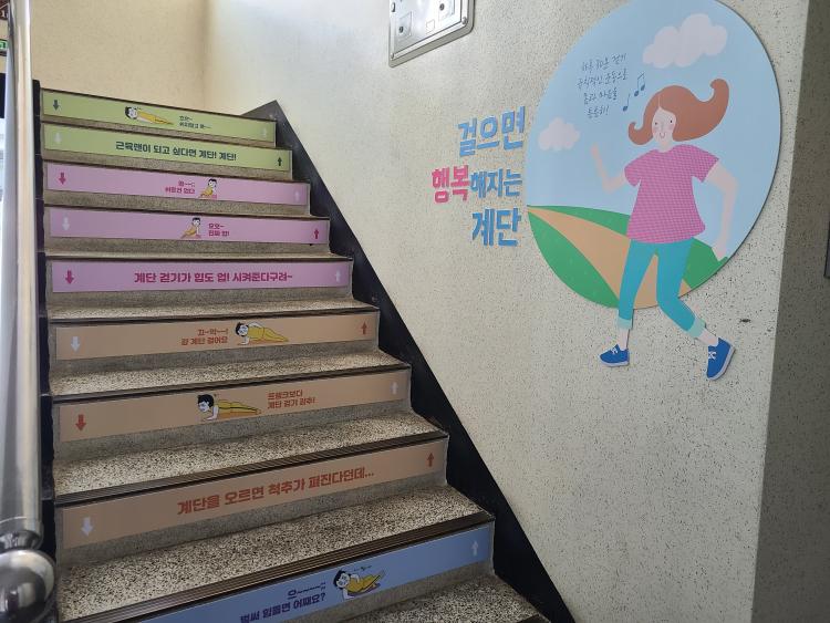 ¡®°Ç°°è´Ü¡¯Àº ¿¤¸®º£ÀÌÅÍ ÀÔ±¸, °è´Ü Àü¸é ¹× º®¸é¿¡ °è´Ü ¿îµ¿ÀÇ È¿°ú µîÀ» ³ªÅ¸³»´Â °Ç° Á¤º¸ À̹ÌÁö¸¦ ºÎÂø, Áֹε鿡°Ô ÀÏ»ó ¼Ó °è´Ü °È±â¿¡ ´ëÇÑ µ¿±â¸¦ ºÎ¿©ÇÏ°í ½Åü Ȱµ¿À» ´Ã¸®±â À§ÇØ ¸¶·ÃµÆ´Ù.
