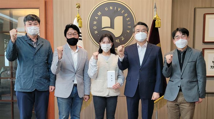[ÅåÅå´º½º]¹Ú»óö È£³²´ëÇб³ ÃÑÀåÀº 11¿ù 2ÀÏ ÃÑÀå½Ç¿¡¼ ¿©ÀÚÆæ½Ì »çºê¸£ ±¹°¡´ëÇ¥·Î ¼±¹ßµÈ ½ºÆ÷Ã÷·¹ÀúÇаú(ÇаúÀå Á¤³²ÁÖ) ±èÁ¤¹Ì(3Çгâ) ¼±¼ö¸¦ ÃÊû, ±¹Á¦´ëȸ ¼±ÀüÀ» ´çºÎÇÏ¸ç °Ý·Á±ÝÀ» Àü´ÞÇß´Ù.