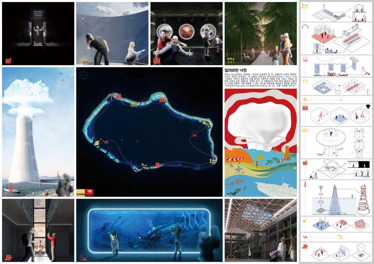 ÀÛǰÀº ¡®ºñŰ´ÏȯÃÊ ÇÙ¹«±â ±â³ä¼¶ ÇÁ·ÎÁ§Æ®¡¯¸¦ ÁÖÁ¦·Î ÇÙ½ÇÇèÀÌ ÁøÇàµÆ´ø ºñŰ´ÏȯÃÊ(Bikini Atoll)ÀÇ ±âÇüÀû ÁöÇü°ú ÀÜÇØ, ÀÌ¿Í ¹Ý´ë·Î ³«¿ø°ú °°Àº ¾Æ¸§´Ù¿î ÀÚ¿¬ ¼Ó¿¡ ´Ù¾çÇÑ °ø°£À» Á¦¾ÈÇß´Ù.