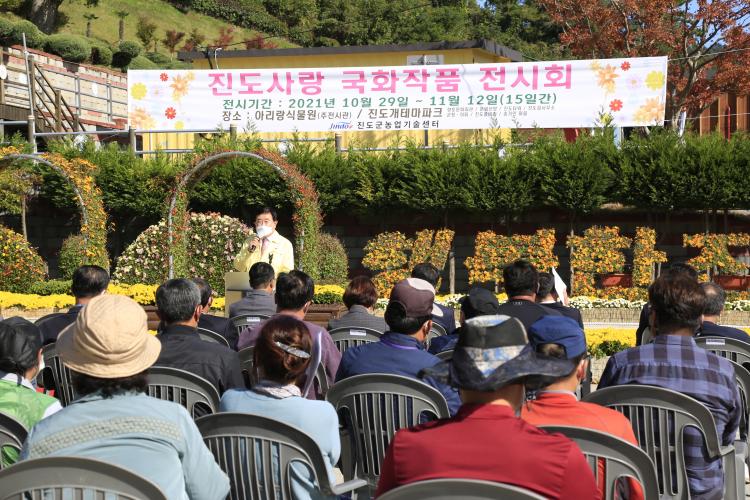 Àü½Ãȸ´Â ±¹È»ê¾÷È¿¬±¸È¸¿ø 35¸íÀÌ 1³â°£ 22ȸÀÇ ±³À°°ú ½Ç½ÀÀ» ÅëÇØ ¿Ï¼ºµÈ ºÐÀç ÀÛǰÀ» ÇÔ²² Àü½ÃÇϰí ÀÖÀ¸¸ç, Áøµµ¾Æ¸®¶û½Ä¹°¿ø ³»¿¡ ¼¿ÇÁ Ä«Æä¸¦ °³Àå, ±¹È ÀÛǰµµ °ü¶÷Çϰí ÀüÅëÂ÷¸¦ ¸¶½Ç ¼öµµ ÀÖ´Ù.