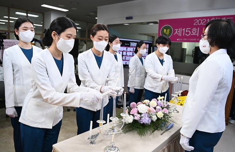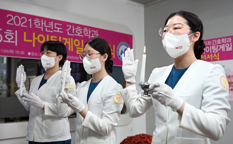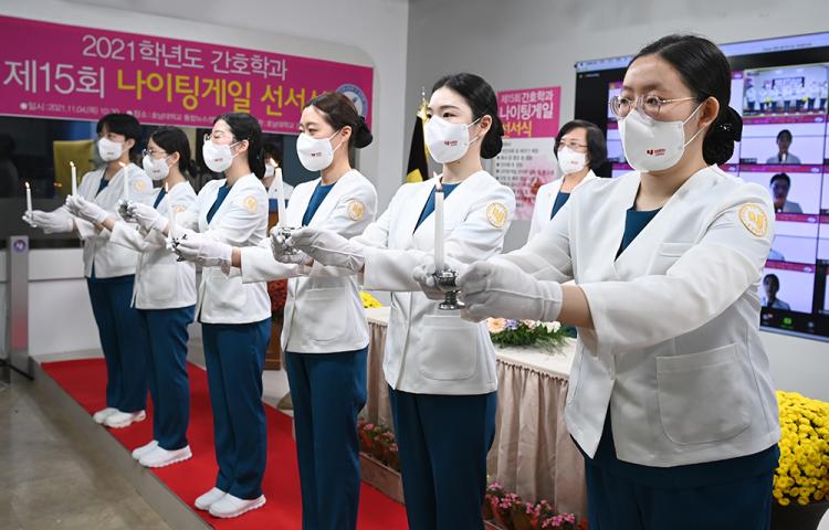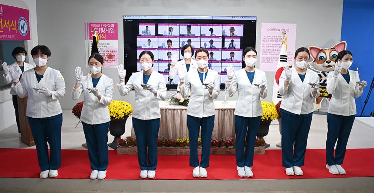 È£³²´ëÇб³ °£È£Çаú ³ªÀÌÆÃ°ÔÀÏ ¼±¼½ÄÀº ³ªÀÌÆÃ°ÔÀÏÀÇ Èñ»ý°ú ºÀ»ç Á¤½ÅÀ» µÇ»õ±â°í °£È£Á¤½ÅÀ» º»¹Þ¾Æ ÀηùÀÇ ¾È³ç°ú °£È£Àü¹®Á÷ÀÇ ¹ßÀü¿¡ ±â¿©ÇÒ °ÍÀ» ´ÙÁüÇÏ´Â Çà»ç·Î ¸Å³â ÁøÇàµÇ°í ÀÖ´Ù.
