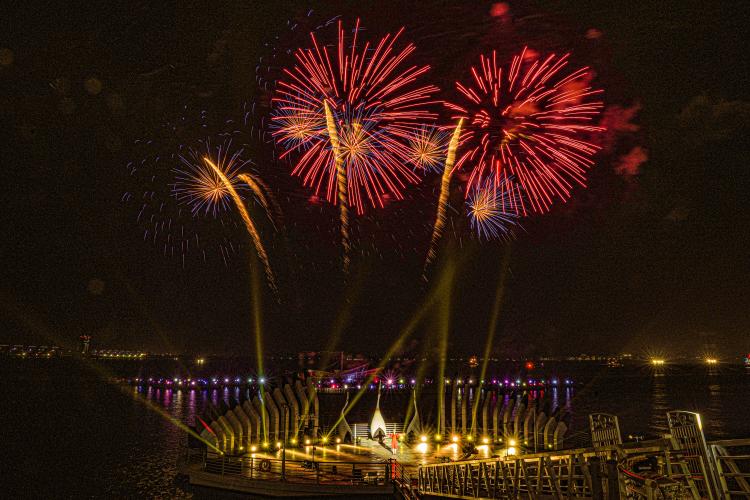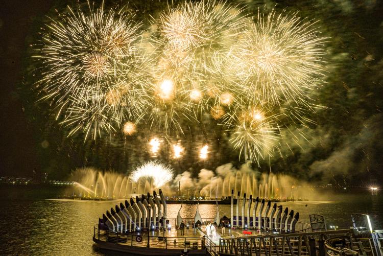 Æòȱ¤Àå ¾Õ ¹Ù´Ù¿¡ »õ·Ó°Ô Á¶¼ºµÈ ÇØ»ó¹«´ë À§¿¡¼ ÆîÃÄÁö´Â ¹ÂÁöÄðú ÃãÃß´Â ¹Ù´ÙºÐ¼ö, È·ÁÇÑ ºÒ²É¼î°¡ ÇÑ µ¥ ¾î¿ì·¯Áø ȯ»óÀûÀÎ °ø¿¬À» °ü¶÷Çϱâ À§ÇØ Ã£Àº ¿¬ÀÎ, °¡Á·, Çлý, °ü±¤°´, ¿Ü±¹ÀÎ µîÀ¸·Î Æòȱ¤Àå ÀÏ´ë´Â ÀλêÀÎÇØ¸¦ ÀÌ·ð´Ù.