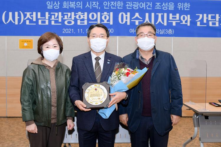 (»ç)Àü³²°ü±¤Çùȸ ¿©¼öÁöºÎ´Â À̳¯ ±Ç¿ÀºÀ ¿©¼ö½ÃÀå¿¡°Ô Äڷγª19 ¹æ¿ª¿¡ ´ëÇÑ ³ë·Â°ú °ü±¤»ê¾÷ ¹ßÀü ±â¿©¿¡ °¨»çÇÏ´Â ¸¶À½À» ´ã¾Æ °¨»çÆÐ¸¦ Àü´ÞÇß´Ù.
