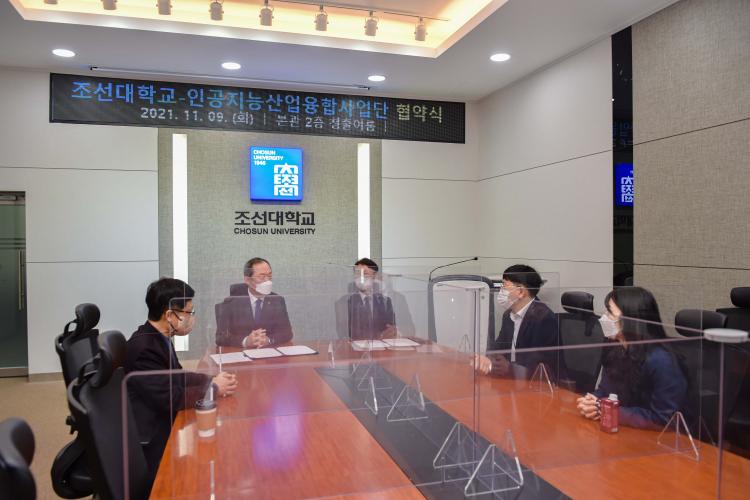 9ÀÏ Á¶¼±´ëÇб³ º»°ü 2Ãþ ûÃâ¾î·ë(ôìõóåÚROOM)¿¡¼ ÁøÇàµÈ Çù¾à½Ä¿¡´Â Á¶¼±´ëÇб³ ¹Î¿µµ· ÃÑÀå°ú ÀΰøÁö´É»ê¾÷À¶ÇÕ»ç¾÷´Ü ÀÓÂ÷½Ä ´ÜÀåÀÌ Âü¼®ÇßÀ¸¸ç Á¶¼±´ë â¾÷Áö¿ø´Ü Ȳ¼®½Â ´ÜÀå ¹× °ü°èÀÚ µîÀÌ Âü¼®Çß´Ù.