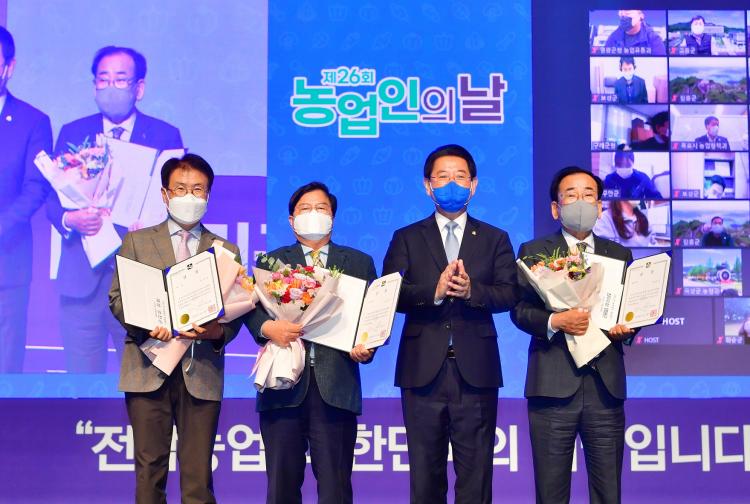 À¯µÎ¼® À强±º¼ö´Â ¡°À̹ø ÃÖ¿ì¼ö»ó ¼ö»óÀº ³ó¾÷ÀÎ ¼Òµæ Çâ»óÀ» À§ÇÑ ³óÁ¤±¸Á¶ °³¼±°ú ºü¸¥ ¹æÇâ¼³Á¤ÀÇ °á°ú¡±¶ó¸é¼ ¡°Áö¿ª ³ó¾÷ÀεéÀÇ ±â´ë¿¡ ºÎÀÀÇÒ ¼ö ÀÖµµ·Ï ¹ßÀüÀûÀÎ ³óÁ¤½ÃÃ¥À» Áö¼ÓÀûÀ¸·Î °³¹ß‧ÃßÁøÇØ °¡°Ú´Ù¡±°í ¸»Çß´Ù.