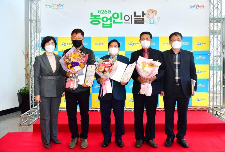 ÇÑÆí, À̳¯ ³ó¾÷ÀÎÀÇ ³¯ ±â³ä½Ä¿¡¼ À̽° Çѱ¹»õ³ó¹ÎÁß¾Óȸ¿øÀÌ ³óÁ¤¹ßÀüÀ¯°ø µµÁö»çǥâÀ» ¼ö»óÇÏ´Â ¿µ±¤À» ¾È¾Ò´Ù.