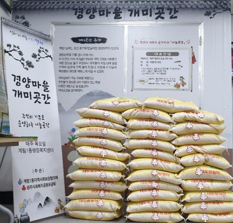 °è¸²1µ¿ ¡®°æ¾ç¸¶À» °³¹Ì°÷°£¡¯Àº Çѱ¹¸¶»çȸ±¤ÁÖÁö»çÀÇ ÈÄ¿ø°ú °è¸²1µ¿ Áö»çÇù ÂøÇѰ¡°Ô ¸ð±Ý¾×À¸·Î ¼³Ä¡µÅ À§±â °¡Á¤ ¹ß»ý ½Ã ÇÊ¿äÇÑ »ýÇÊǰÀ» Áö¿øÇϰí, ¸ÅÁÖ ¸ñ¿äÀÏÀº Á¤±âÀûÀ¸·Î °÷°£À» ¿¾î µ¹º½ ÀÌ¿ô¿¡ ÇÊ¿äÇÑ »ýÇÊǰ, Ãë»çµµ±¸, ¹ÝÂù µîÀ» Á¦°øÇØ ¿À°í ÀÖ´Ù.