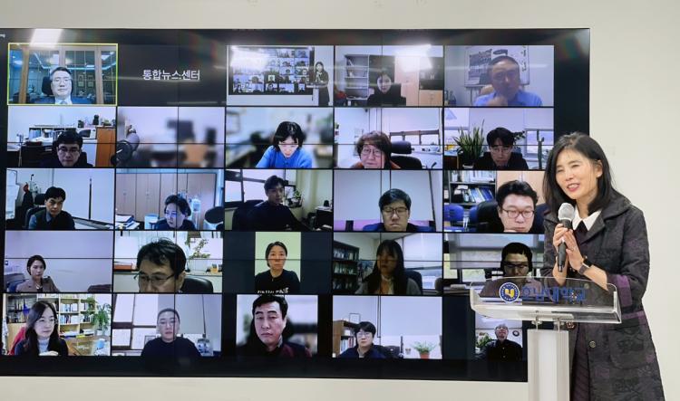 ÀΰøÁö´É½Ã´ë¸¦ ¼±µµÇÒ ´ëÇб³À°À» À§ÇÑ AI±³À° ½ÇÁõÃßÁøÀ§¿øÈ¸(À§¿øÀå ¹é¶õ)ÀÇ Áö³ 5°³¿ù°£ ¿¬±¸°á°ú¿Í °¢ ´Ü°ú´ëÇк° ±³À° ±¸Çö¹æÇâÀ» °øÀ¯ÇÑ À̳¯ ¹ßǥȸ¿¡´Â ¹Ú»óö ÃÑÀåÀ» ºñ·ÔÇØ ´ëÇÐ º¸Á÷ÀÚ¿Í Àüü ±³¼öµéÀÌ ¿Â¶óÀÎ ZOOMÀ» ÅëÇØ Âü¼®, È£³²´ëÇб³ÀÇ ¹Ì·¡±³À° ºñÀü ¼ö¸³¿¡ ¸Ó¸®¸¦ ¸Â´ò´Ù.