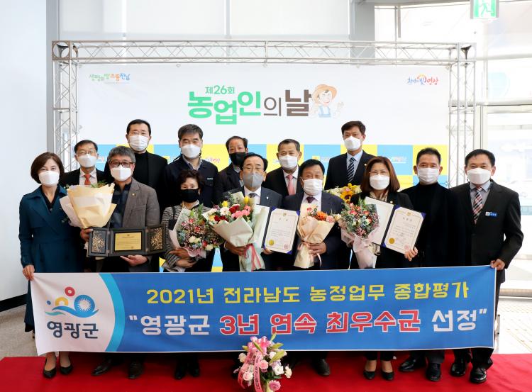 ƯÈ÷, ¿µ±¤±ºÀº 3³â ¿¬¼Ó Àü¶ó³²µµ ³óÁ¤¾÷¹« Á¾ÇÕÆò°¡¿¡¼ ÃÖ¿ì¼ö±ºÀ¸·Î ¼±Á¤µÇ¾úÀ¸¸ç, ³ó¾÷Àδë»ó(Ãà»êºÐ¾ß)¿¡ ¹Ì¸£¸ñÀå ´ëÇ¥ ±è¿ëö, ³óÁ¤¹ßÀü À¯°ø¿¡´Â (»ç)Çѱ¹¿©¼º³ó¾÷Àοµ±¤±º¿¬ÇÕȸ ÃÖ¼ºÈ ȸÀå, ³ó°¡ÁֺθðÀÓ Àü¶ó³²µµ ¿¬ÇÕȸ Á¤Çý¼÷, (»ç)Çѱ¹³óÃÌÁöµµÀÚ ¿µ±¤±º¿¬ÇÕȸ Á¤´ö¼ø ´ÔÀÌ ¼ö»óÀÚ ¸í´Ü¿¡ À̸§À» ¿Ã·È´Ù.