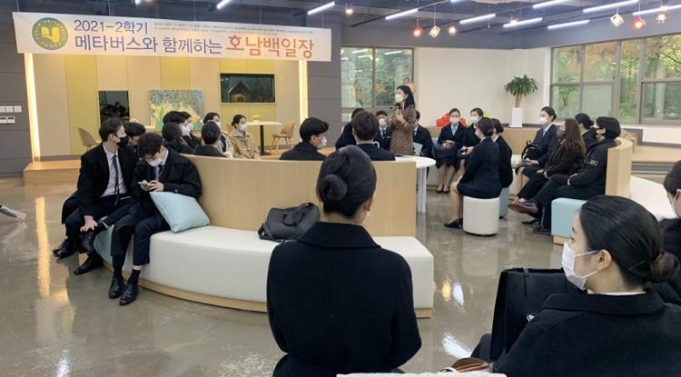 ¹éÀÏÀå¿¡ Âü¿©ÇÑ 56¸íÀÇ ÇлýµéÀº ¸ÞŸ¹ö½º Ç÷§Æû(ZEPETO)¿¡¼ °¢ÀÚÀÇ ¾Æ¹ÙŸ·Î ¹éÀÏÀå ÁÖÁ¦¸¦ ãÀ¸¸ç Çö½Ç ¼Ó È£³²´ëÇб³ WISE Lounge¿Í Æ®À©°ø°£À» üÇèÇØº¸´Â ½Ã°£À» °¡Á³´Ù.