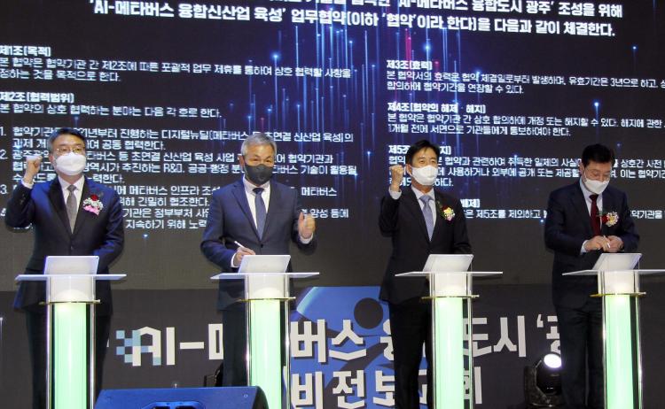 [ÅåÅå´º½º]¡®AIƯ¼ºÈ´ëÇС¯ È£³²´ëÇб³(ÃÑÀå ¹Ú»óö)°¡ ¸ÞŸ¹ö½º ±â¼úÀ» Á¢¸ñÇÑ ¡®AI-¸ÞŸ¹ö½º À¶ÇÕµµ½Ã ±¤ÁÖ¡¯ Á¶¼ºÀ» À§ÇØ ±¤ÁÖ±¤¿ª½Ã¸¦ ºñ·ÔÇÑ 24°³ ±â°ü°ú ¡®AI-¸ÞŸ¹ö½º À¶ÇսŻê¾÷ À°¼º¡¯ ¾÷¹«Çù¾àÀ» ¸Î¾ú´Ù.