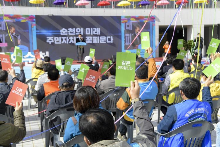 °³¸·½Ä¿¡¼´Â ¸ðÀÇ ½Ã¹ÎÃÑȸ¸¦ ÅëÇØ 668¸íÀÇ ÁÖ¹ÎÀÚÄ¡À§¿øµéÀÌ Á÷Á¢ ¸¸µç ¼øÃµ½Ã ÁÖ¹ÎÀÚÄ¡ ºñÀü ¡®¼øÃµÀÇ ¹Ì·¡ ÁÖ¹ÎÀÚÄ¡·Î ²ÉÇÇ¿î´Ù.¡¯¸¦ ¼±Æ÷ÇÏ¸ç ¼øÃµ½Ã ÁÖ¹ÎÀÚÄ¡°¡ ³ª¾Æ°¥ ¹æÇâÀ» ¸¹Àº ½Ã¹Î°ú ÇÔ²² °øÀ¯Çß´Ù.