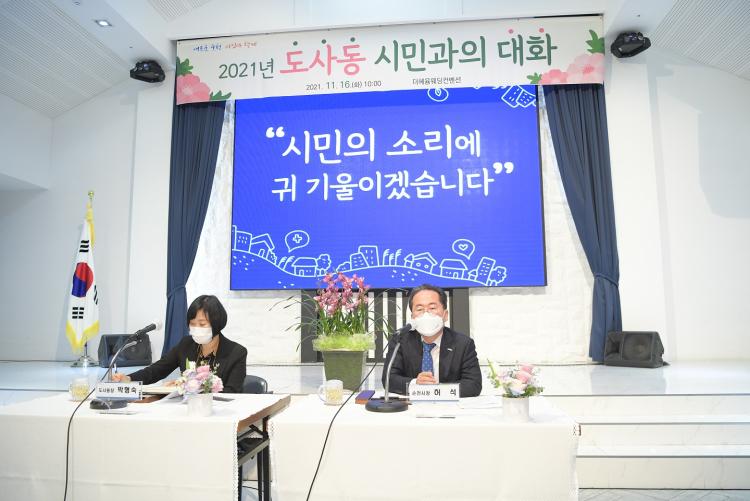 À̳¯ ½Ã¹Î°úÀÇ ´ëÈ´Â µµ»çµ¿ ÁֹεéÀÇ °ø°¨¡¤ÈÇÕÀÇ ÀåÀÌ µÇ¾úÀ¸¸ç, °ÇÀÇ»çÇ׿¡ ´ëÇØ¼´Â ÇØ´ç ºÎ¼ÀåµéÀÇ Áï°¢ÀûÀÎ ´äº¯À» µéÀ» ¼ö ÀÖ´Â µî ¼ÒÅëÇàÁ¤À» ü°¨ÇÒ ¼ö ÀÖ´Â ÀÚ¸®¿´´Ù.