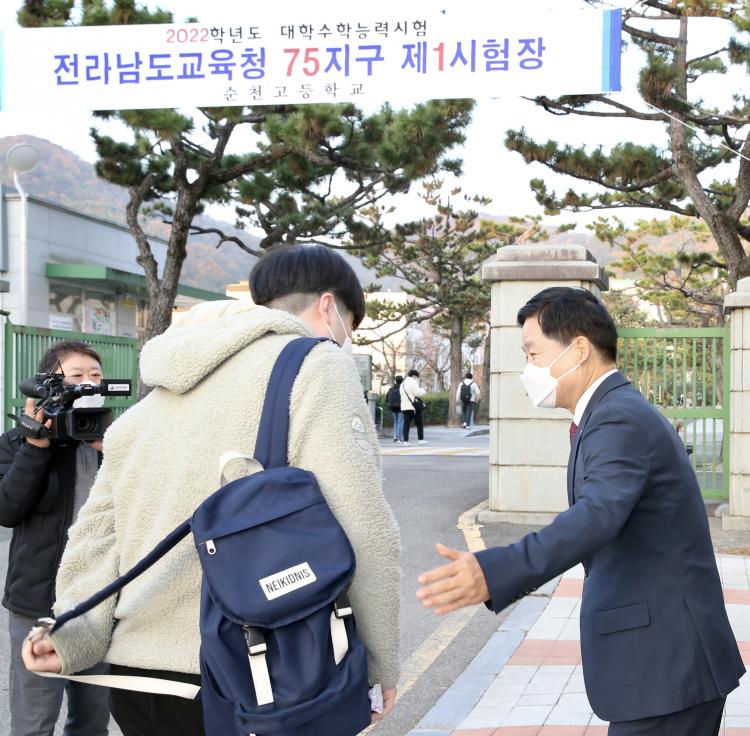 Àå¼®¿õ ±³À°°¨Àº À̳¯ ¿ÀÀü ¼øÃµ Áö±¸ Á¦1½ÃÇèÀåÀÎ ¼øÃµ°íµîÇб³ ±³¹®¿¡¼ ½ÃÇèÀ» Ä¡¸£±â À§ÇØ Çб³ ¾ÈÀ¸·Î µé¾î¼´Â ¼öÇè»ýµéÀ» ¹Ý°©°Ô ¸ÂÀÌÇϸç ÃÖ¼±À» ´ÙÇØÁÙ °ÍÀ» ´çºÎÇß´Ù.