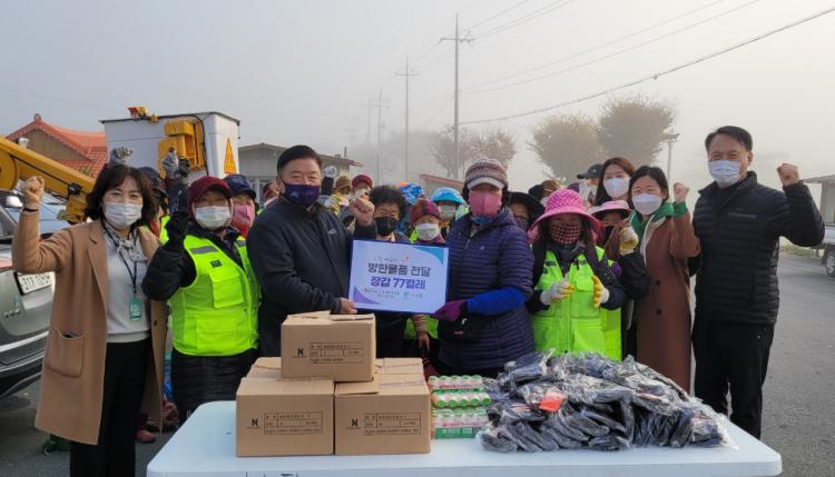 ÀÌ ³¯µµ ±è ´ëÇ¥´Â Àå°©À» Àü´ÞÇÏ¸ç ½Ò½ÒÇÑ ³¯¾¾¿¡µµ ¸¶À»À» À§ÇØ °í»ýÇÏ´Â ³ëÀÎ ÀÏÀÚ¸® Âü¿©Àڵ鿡°Ô °¨»çÇÑ ¸¶À½À» Ç¥Çß´Ù. ±è ´ëÇ¥´Â ¡°¼Ò¼ÒÇÑ ³ª´®ÀÌÁö¸¸ ÀÌ·¸°Ô¶óµµ °¨»çÇÑ ¸¶À½À» Àü´ÞÇÒ ¼ö ÀÖ¾î¼ ³» ÀÚ½ÅÀÌ ÇູÇÏ´Ù. ¿¬¸»ÀÌ ´Ù°¡¿À¸é¼ »çȸ °÷°÷¿¡ ´õ ¸¹Àº ¿ÂÁ¤ÀÌ ÇÊ¿äÇÒ °ÍÀ̶ó°í »ý°¢ÇÑ´Ù. ¾ÕÀ¸·Îµµ ´õºÒ¾î »ç´Â ¿À°î¸éÀ» ¸¸µé±â À§ÇØ ³ë·ÂÇϰڴÙ.¡±¶ó°í ¸»Çß´Ù.