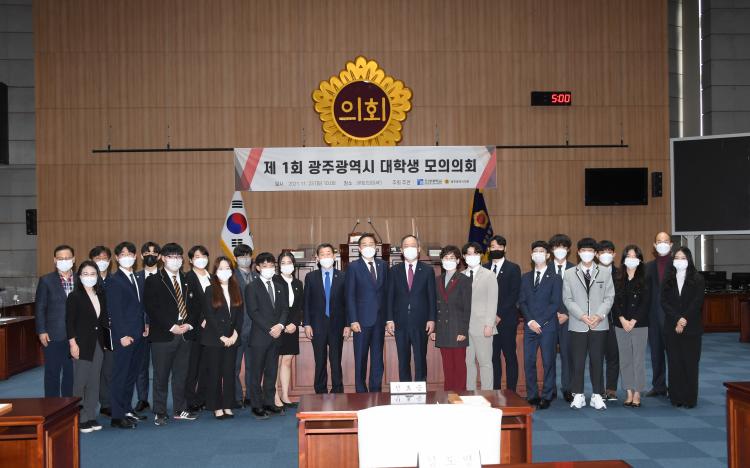 ÇÑÆí, ±¤ÁÖ±¤¿ª½ÃÀÇȸ´Â À̹ø ´ëÇлý ¸ðÀÇÀÇȸ¿¡¼ ¿ì¼öÇÑ ÀÇÁ¤È°µ¿À» ÇÑ ÇлýµéÀ» ´ë»óÀ¸·Î ÀÇÀå»óÀ» ¼ö¿©ÇÒ ¿¹Á¤À̸ç, ³»³â¿¡´Â ¸ðÀÇÀÇȸ Ȱ¼ºÈ¸¦ À§ÇØ Âü¿© ´ë»óÀ» È®´ë ¿î¿µÇÒ °èȹÀÌ´Ù.