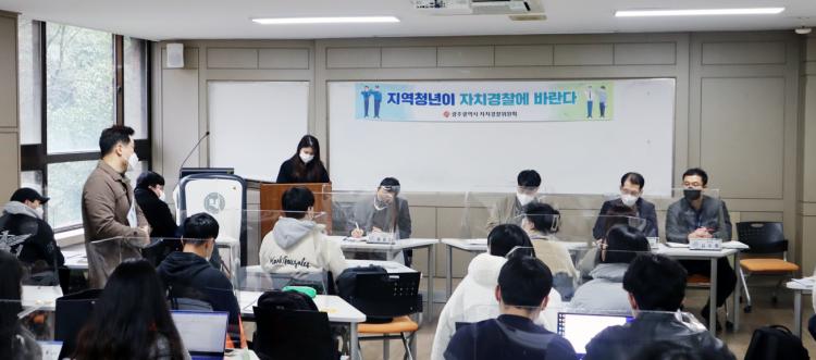 ±è¼¼ÈÆ ÀÚÄ¡°æÂûÇàÁ¤°úÀå µî 4¸íÀÌ ÆÐ³Î·Î Âü¼®ÇÑ À̳¯ °£´ãȸ´Â ¡®Áö¿ªÃ»³âÀÌ ÀÚÄ¡°æÂû¿¡ ¹Ù¶õ´Ù¡¯¶ó´Â ÁÖÁ¦·Î ±¤ÁÖ ÀÚÄ¡°æÂûÁ¦ÀÇ ÇöȲ¼Ò°³¿¡ ÀÌ¾î ´ëÇлýÀÌ ¹Ù¶ó´Â ÀÚÄ¡°æÂû ¹ßÀü¹æ¾È ÀÇ°ß °³ÁøÀÇ ½Ã°£À» °¡Á³´Ù.