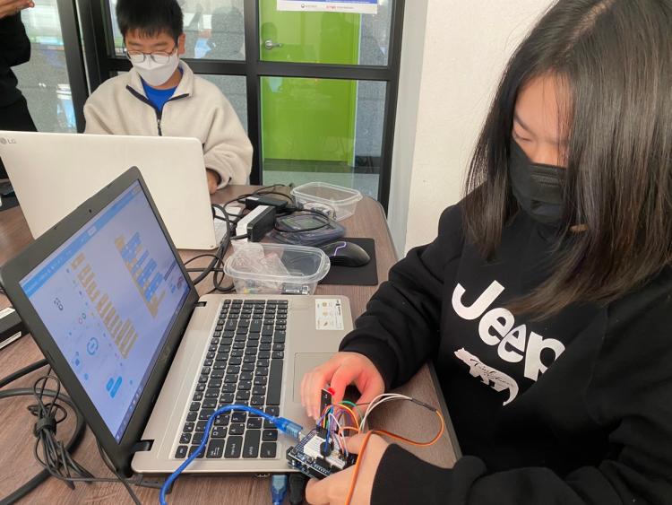 À̳¯ ÇлýµéÀº ¾ÆµÎÀ̳ë ÀüÀÚȸ·ÎÀÇ ¿ø¸®¸¦ ÀÌÇØÇÏ°í ºí·ÏÄÚµùÀ¸·Î ¾ÆµÎÀ̳븦 Á¦¾îÇÏ´Â ÇÁ·Î±×·¥À» ¹è¿öº¸°í Á÷Á¢ üÇèÇØ º½À¸·Î½á ¾ÆµÎÀ̳ë ÄÚµùÀ» ½±°Ô ÀÌÇØÇÏ°Ô µÇ¾ú°í, °ü·Ã Á÷¾÷ Àü¹®°¡¿¡°Ô Á÷Á¢ µè°í ¹è¿ì´Â ½Ã°£À» ÅëÇØ û¼Ò³âµéÀÇ Áø·Î¼³°è¿Í âÀÇÀ¶ÇÕ ´É·ÂÀ» Ű¿ï ¼ö ÀÖ´Â À¯ÀÍÇÑ ½Ã°£À» º¸³Â´Ù.
