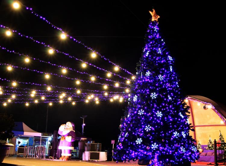 º¸¶ó»ö ¿ÊÀ» ÀÔ°í ÀÖ´Â 4m ³ôÀÌÀÇ ÆÛÇà »êŸ¿Í 5m ³ôÀÌÀÇ Å©¸®½º¸¶½º Æ®¸®´Â º¸¶ó»ö Á¶¸í°ú ¾î¿ì·¯Á® ȯ»óÀûÀÎ ºÐÀ§±â¸¦ ÀھƳ½´Ù. À̹ø¿¡ ¼³Ä¡µÈ ÆÛÇûêŸ¿Í Å©¸®½º¸¶½ºÆ®¸®´Â ³»³â 1¿ù ¸»±îÁö ÆÛÇü¶ÀÇ ¹ãÇÏ´ÃÀ» º¸¶ó»öÀ¸·Î ¹°µéÀÏ ¿¹Á¤ÀÌ´Ù.