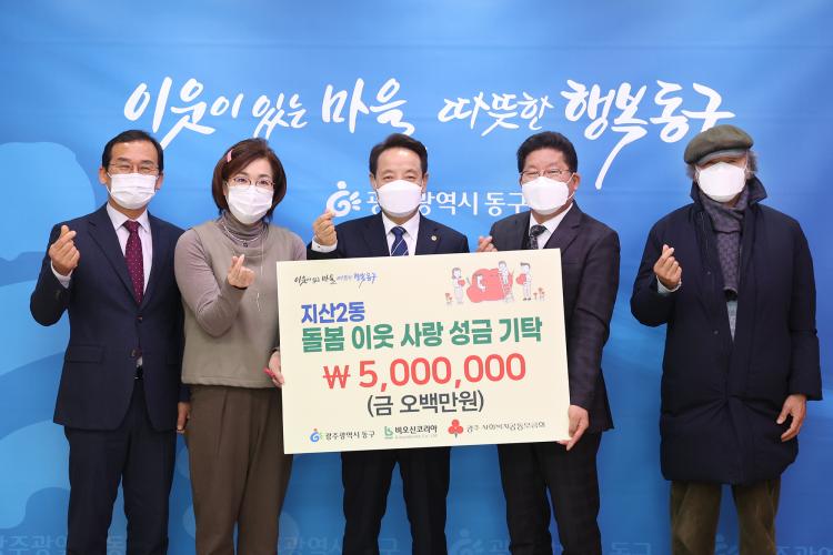 °Á¾¿Á ´ëÇ¥´Â ¡°Äڷγª19 Àå±âÈ·Î Èûµç ½Ã±â¸¦ º¸³»°í ÀÖ´Â Áö»ê2µ¿ÀÇ µ¹º½ ÀÌ¿ôµé¿¡°Ô Á¶±ÝÀ̳ª¸¶ ÈûÀÌ µÉ ¼ö Àֱ⸦ ¹Ù¶õ´Ù¡±¸é¼ ¡°¾ÕÀ¸·Îµµ ÀÌ¿ôÀ» À§ÇÑ ³ª´® ½Çõ¿¡ ¾ÕÀå¼°Ú´Ù¡±°í ¸»Çß´Ù.