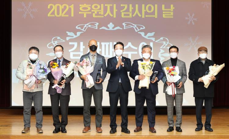 ¿ÃÇØ´Â º¸¼ºÀåÇÐÀç´Ü, Çѱ¹¸¶»çȸ±¤ÁÖÁö»ç¿Í ÇÔ²² Äڷγª19 ±Øº¹À» À§ÇØ ±âºÎ¿¡ µ¿ÂüÇÑ ¢ß½Ö¹æ¿ï, (»ç)¹«±ÃȺ¹Áö¿ùµåºû°íÀ»ºÀ»ç´Ü µî 10°³ ÈÄ¿ø±â°ü, ´Üü¿¡ °¨»çÆÐ¸¦ ¼ö¿©Çϰí 13¸íÀÇ µ¿ ÇùÀÇü À§¿øµé¿¡°Ô °¨»çÀÇ ¸¶À½À» ÀüÇß´Ù.